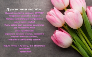 Очаровательные женщины, уважаемые партнеры, поздравляем вас с наступающим прекрасным праздником весны!